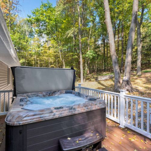 ✔️ Tropic Sea Spa: 7 person hot tub w/ complete privacy & lush view of the woods.