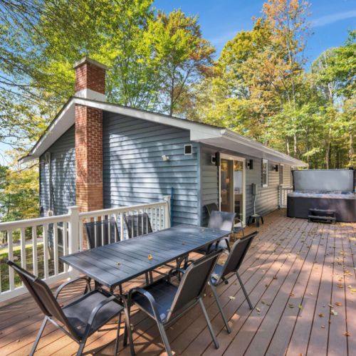 ✔️ Outdoor dining: Al fresco dining for 10 the deck, designed to offer stunning lake views and a serene woodland backdrop.