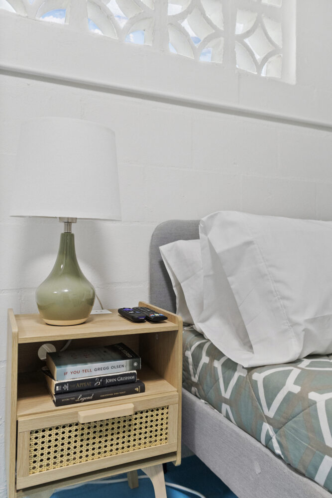 -Comfortable queen bed with fresh linens, smart tv, night tables, lamps, closet, iron, ironing board