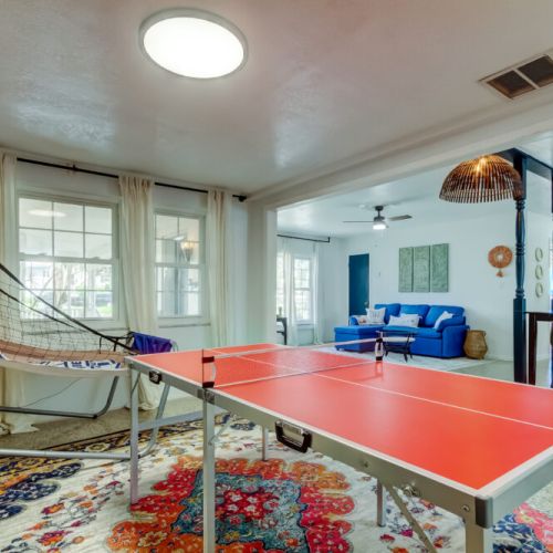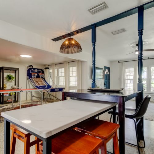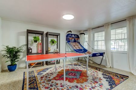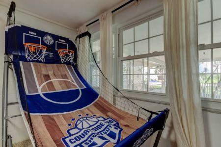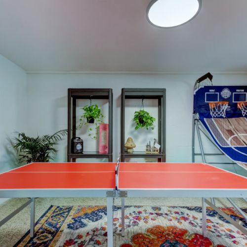 -Game room - Basketball hoops, ping pong, karaoke, vintage popcorn machine, board games