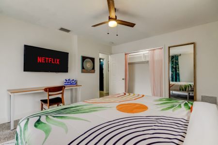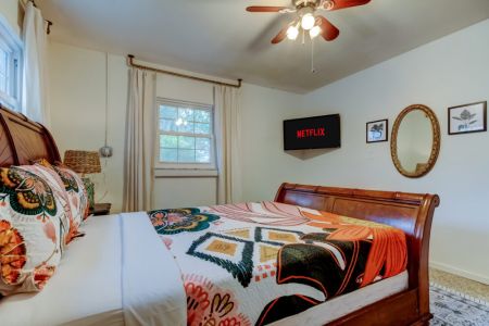 -Comfortable king bed with fresh linens, smart tv, dresser, night tables, lamps, closet, iron, ironing board-Comfortable queen bed with fresh linens, smart tv, dresser, night tables, lamps, closet, iron, ironing board