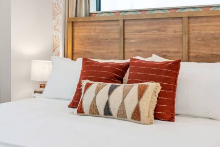 • Pink Reef Room: Queen Helix bed , Twin Bunk Helix Beds, 4K 55” Smart TV, built-in closet, fan, blackout curtains, dimmable lights, extension cables for chargers. Located on top level.