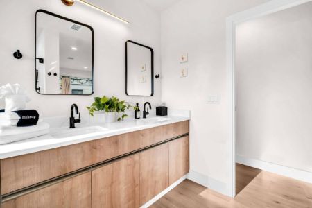 • Bathrooms 3 full – 2 on top level (ensuite with walk-in shower, dual sinks, soaking tub, water closet. Full bathroom with shower tub combo and grab bar), 1 on main level (walk-in shower).