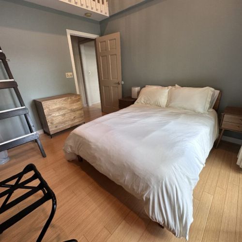 • Third Bedroom: Lofted queen bed & full-size bed, sliding door to access the deck, lake view, black out curtains, luggage stand, dresser, dimmable lights. Portable AC unit can be used in summer months (evenings only please).