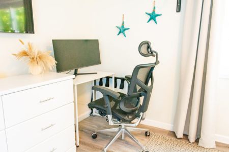 *Dedicated executive work space with desk, ergonomic chair & computer monitor