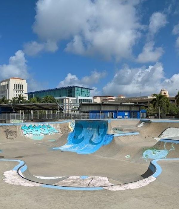 Former baseball stadium build on 60 acres. Amenities – amphitheater, tennis center, skate park, circus park, cycling, disc golf, art, playground, dog friendly, cafe, parking, picnic tables, water feature, walking path, restrooms.